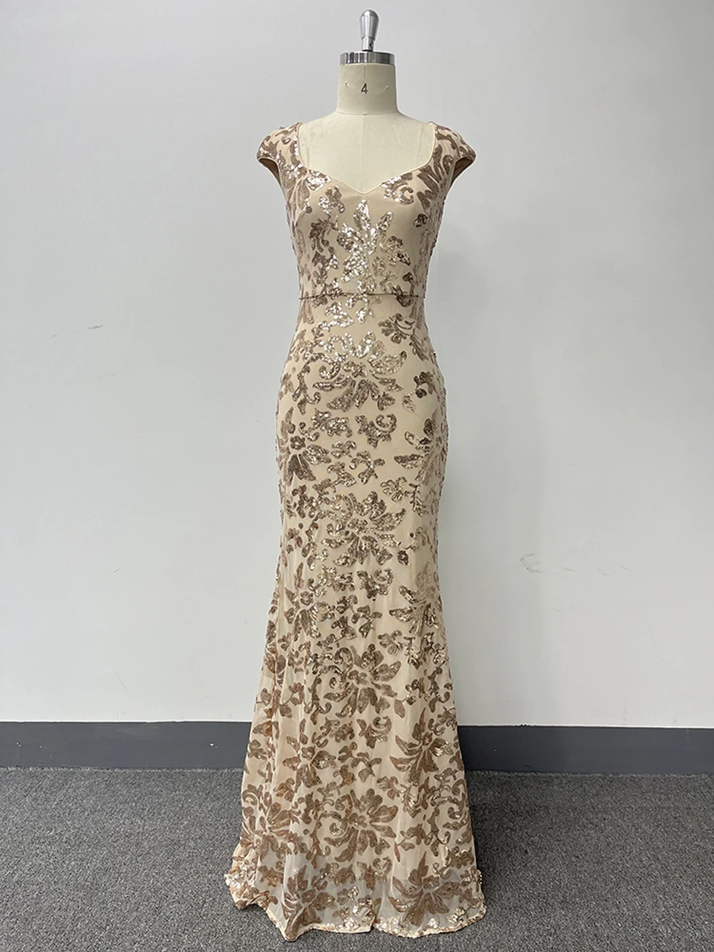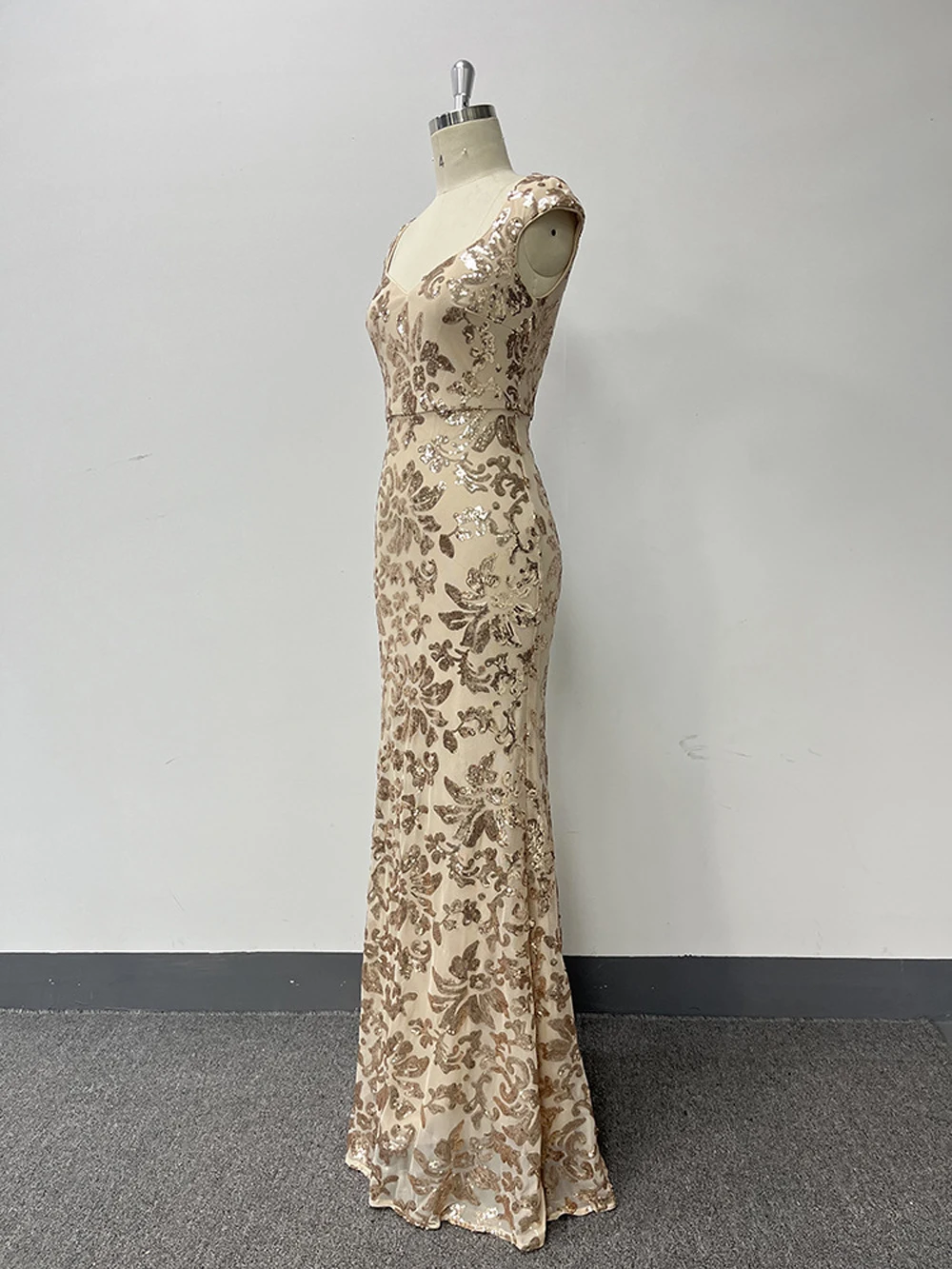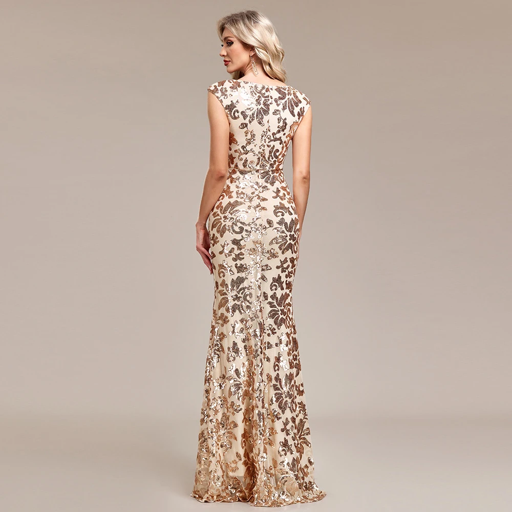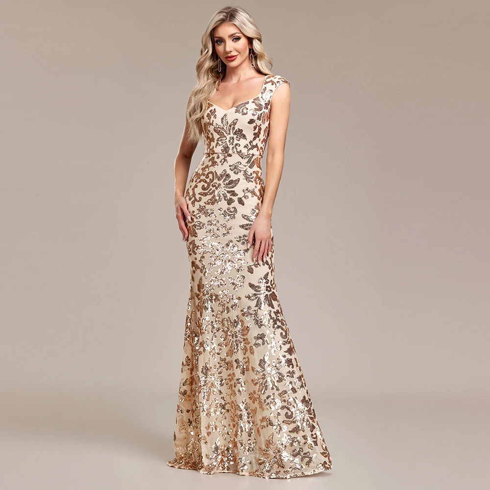 Cocktail Gold Dresses For Women Wedding Guest Look Woman Stage Costume Sequin Embroidery Elegant Party Gowns Luxury Prom Dress